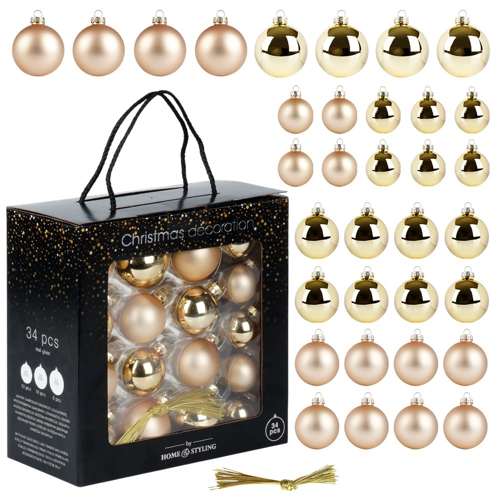 Vyberte si z obľúbených materiálov: sklenené ozdoby s jemným dekorom, neroztbítné plastové gule a koule vhodné do rodín, drevené ozdoby a papierové hviezdy pre prírodný vzhľad. K dispozícii sú sady ozdôb vo farbách červená, zlatá, strieborná, biela, champagne či modrá a v povrchových úpravách matné, lesklé, trblietavé aj perleťové. Rôzne veľkosti a tvary od mini po XXL umožnia vyzdobiť malé aj veľké stromčeky a dosiahnuť jednotný vzhľad.