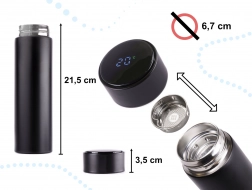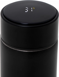 Štýlový termo hrnček s dotykovým LED displejom teploty na pohodlné sledovanie nápoja na cestách. Vákuovo izolované dvojité steny udržia teplotu celé hodiny, nehrdzavejúca oceľ je bezpečná pre kontakt s potravinami a jemné sitko zachytí čajové lístky či kávové usadeniny. Objem 500 ml, tesniace viečko a minimalistický čierny dizajn na každodenné použitie do auta, kancelárie aj na cesty.