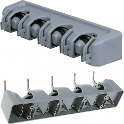 Praktický nástenný organizér udrží vaše domáce aj záhradné vybavenie pekne na svojom mieste. Ponúka 4 držiaky na kefy, mopy či tyče a 5 háčikov na drobnosti. Ľahko sa pripevní na stenu a vďaka šikovným upínacím prvkom pasuje na rôzne priemery tyčí. Ideálny do technickej miestnosti, garáže, dielne, kuchyne aj na rybárske prúty.