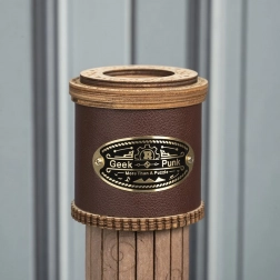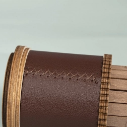 Drevený tubus s koženým pruhom a kovovým štítkom dodáva modelu vintage vzhľad, ktorý ozdobí každý interiér.