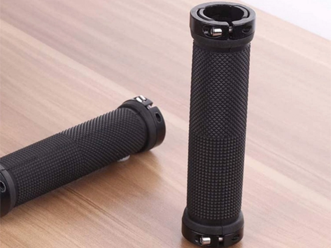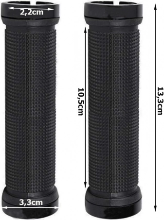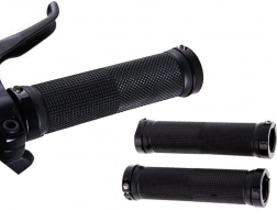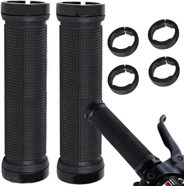 Gumené rukoväte na bicykel sú vyrobené z kvalitnej protišmykovej gumy poskytujúcej mäkkosť a tlmenie nárazov. Kovové koncovky so skrutkami zaisťujú pevné uchytenie a eliminujú možnosť vykĺznutia gripov počas jazdy.