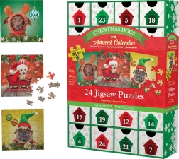 Skráťte si čakanie na Štedrý deň s originálnym adventným kalendárom EUROGRAPHICS, ktorý ukrýva 24 mini puzzle s motívom vianočných psíkov. Každý deň poskladáte 50-dielne puzzle s rozmerom 12,5 × 12,5 cm. Pevná krabica s 24 zásuvkami je znovupoužiteľná – budúci rok ju ľahko naplníte drobnými prekvapeniami.
