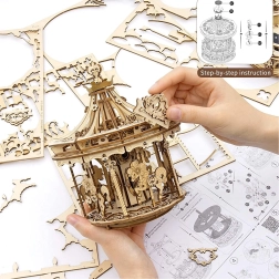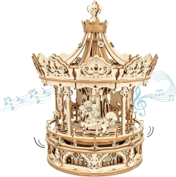 Užite si chvíle pokoja a pohody s dreveným kolotočom z našej ponuky modelových kitov. Tento kolotoč funguje nielen ako krásna dekorácia, ale tiež ako výzva pre vaše šikovné ruky vďaka strednej obtiažnosti skladania tohto 384 dielkového modelu.