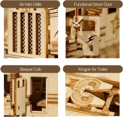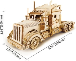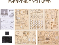 Tento detailný a precízny model kamiónu je skvelým príkladom precízneho remeselného spracovania. Vyrobený z laserom vyrezaných dielikov z 2 mm lipovej preglejky, ktoré sa ľahko vyraďujú z podložky. Účelom je rozvíjať vaše technické myslenie, predstavivosť a jemnú motoriku.