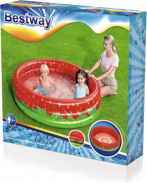 Roztomilý nafukovací bazénik v tvare jahody prinesie deťom od 2 rokov veľa letnej zábavy na záhrade. Vďaka kompaktným rozmerom 160 × 38 cm sa ľahko umiestni, je rýchlo pripravený na použitie a rovnako ľahko sa vypustí a uloží. Odolný PVC materiál, 3 nafukovacie prstence a mäkké steny pre pohodlie a bezpečie zaručia bezstarostné a bezpečné šantenie vo vode.