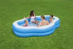 Nafukovací bazén BESTWAY s rozmermi 270 × 198 × 51 cm je navrhnutý na relax celej rodiny. Dva nafukovacie prstence zabezpečujú stabilitu, zatiaľ čo tvarované steny a dve integrované sedadlá poskytujú pohodlné oprenie chrbta. Praktické držiaky na nápoje udržia vaše osvieženie vždy po ruke a priehľadné okienko pridáva zábavný prvok pre deti.