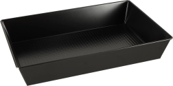 Vďaka vystuženým rohom a kvalitnému spracovaniu je plech stabilný a odolný voči deformáciám. Využijete ho na koláče, bábovky, dezerty, ale aj na pečené mäso a zeleninu. Vhodný do plynových aj elektrických rúr. Pre dlhú životnosť odporúčame ručné umývanie (nie je vhodné do umývačky).