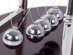 Objavte upokojujúci rytmus a krásu fyziky. Newtonovo kyvadlo názorne demonštruje zákon zachovania hybnosti a energie – pohyb jednej guličky sa prenáša na druhú a vytvára fascinujúci, plynulý pohyb. Ideálne na krátke pauzy počas dňa aj ako pútavý prvok do interiéru.