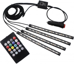 Vylepšite atmosféru svojho vozidla pomocou inteligentného LED ambientného osvetlenia. Štyri flexibilné a vodotesné LED pásiky s technológiou SMD 5050 RGB umožňujú ľahko meniť farby, jas aj efekty. Vďaka diaľkovému ovládaču prepnete medzi 8 stálymi farbami, 4 skokovými režimami a hudobnými režimami, ktoré reagujú na rytmus.