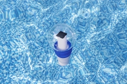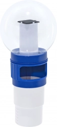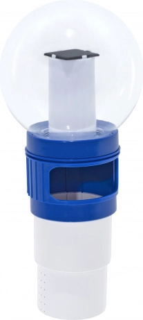 Šikovné riešenie 2 v 1 pre každú záhradnú nádrž: plávajúci dávkovač bazénovej chémie Bestway zabezpečuje rovnomerné uvoľňovanie chlórových či brómových tabliet a zároveň večer rozsvieti vodnú hladinu príjemným LED svetlom. Solárny článok nabíja svetlo cez deň, takže nepotrebujete žiadne káble ani vymeniteľné batérie.