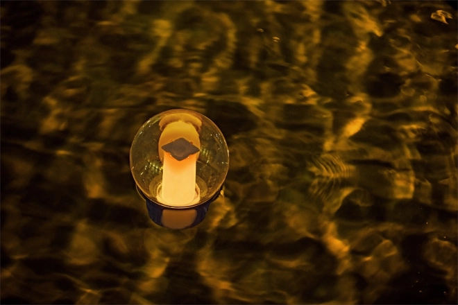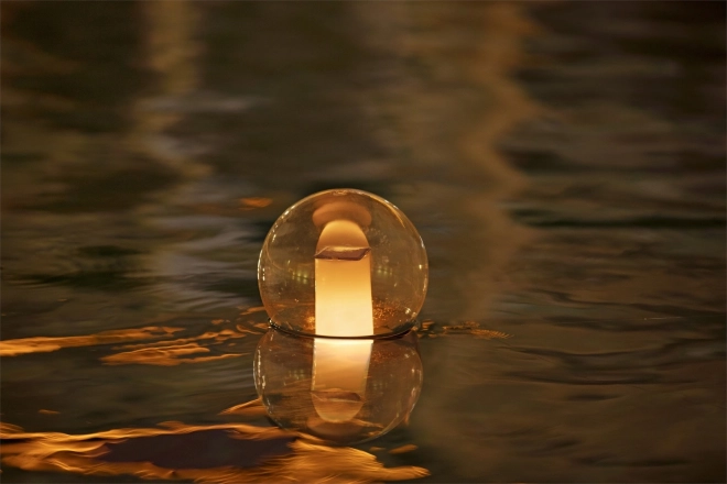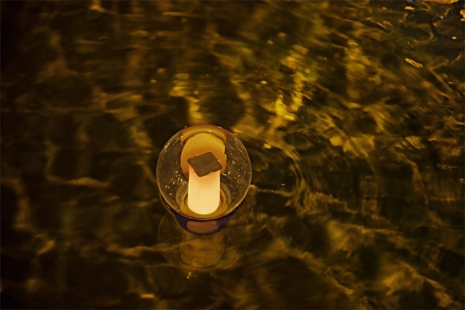 Udržiava vodu hygienicky čistú a večer vytvára príjemné ambientné svetlo bez káblov – solárny článok napája LED s výdržou 6–8 hodín.