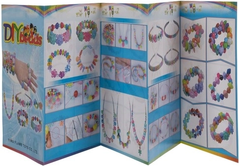 Farebná brožúrka s návodmi na tvorbu náhrdelníkov a náramkov, ktorá deťom ukáže rôzne vzory.