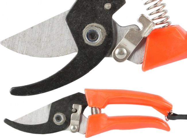 Záhradné nožnice s bezpečnostnou poistkou, ktorá zabraňuje náhodnému otvoreniu čepele.