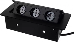 Táto zápustná trojitá zásuvka IZOXIS kombinuje moderný dizajn s praktickým riešením pre domácnosti, kancelárie aj konferenčné miestnosti. Tenký plochý okraj dokonale lícuje s doskou a čierne prevedenie ladí s väčšinou interiérov. Vysokokvalitné kovové spracovanie zaisťuje odolnosť a dlhú životnosť.