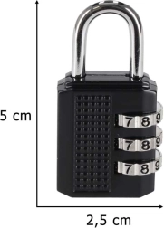 Spoľahlivý cestovný zámok s tromi číselníkmi je ideálny na zabezpečenie zipsov kufrov, ruksakov, skriniek a menších skriniek. Základný kód je nastavený na 000 a behom chvíľky ho zmeníte na vlastnú kombináciu. Vďaka kompaktným rozmerom a nízkej hmotnosti sa pohodlne zmestí do vrecka aj príručnej tašky.