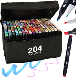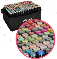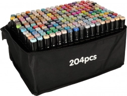 Profesionálna sada obsahuje 204 dvojhrotových alkoholových markerov v praktickom puzdre a so stojanom na prehľadné uloženie. Ponúka intenzívne farby, rýchloschnúci atrament a dva hroty na plochy aj detailnú prácu – ideálne pre ilustrátorov, dizajnérov aj hobby tvorenie.