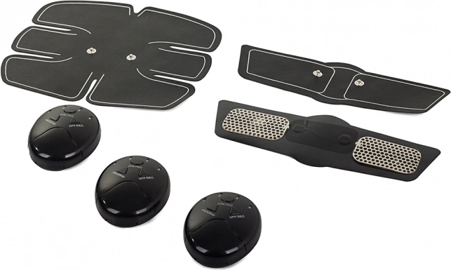 Elektrostimulátor EMS generuje jemné elektrické impulzy, ktoré vyvolávajú rytmické kontrakcie svalov. Vďaka veľkým elektródam na pružnej silikónovej podložke sa prispôsobí tvaru tela a efektívne zasiahne aj hlbšie svalové vlákna. Sada obsahuje podložku na brucho a dve menšie podložky na paže či stehná, takže môžete precvičovať viac partií naraz.