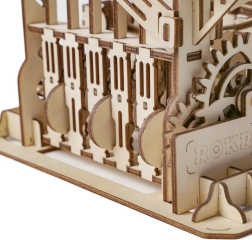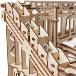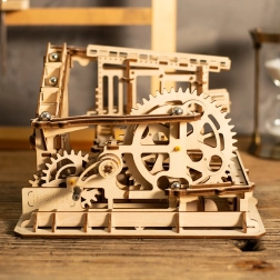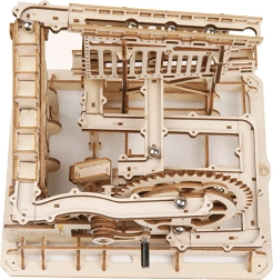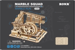 ROBOTIME ROKR Marble Run Squad je detailné 3D drevené puzzle, ktoré po zostavení ožije šikovnou mechanikou. Zatočte kľukou a sledujte, ako oceľové guľôčky svištia po rovných aj klopených dráhach, prechádzajú padacími dvierkami a stúpajú zdvihákom. Model vyniká precíznym laserovým výrezom, stabilnou konštrukciou a je vyrobený z bezpečných, netoxických materiálov.