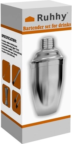 Tento set zahŕňa: shaker s objemom 700 ml, barovú odmerku (Jigger) 15/30 ml, barovú lyžicu, barmanský drvič (Muddler) a 2 nalievky. Shaker je vybavený vstavaným sitom, ktoré vám umožní oddeliť koktail od zvyškov ingrediencií.