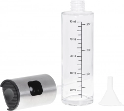 Vyrobená z odolných materiálov, fľaša kombinuje bezpečné sklo pre potraviny s plastovým a nerezovým rozprašovačom. Vďaka praktickej stupnici po boku, si vždy udržíš prehľad o množstve obsahu.