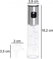 Táto sprejová fľaša je ideálnym pomocníkom pri príprave jedla. Úplne sa hodí na dávkovanie olejov, octu, sójovej omáčky alebo iných tekutých korenín. Jednoduché a presné dávkovanie zabezpečí mechanický rozprašovač, ktorý vytvára jemnú hmlu, čo zaručuje rovnomerné pokrytie.