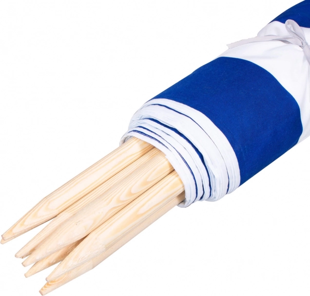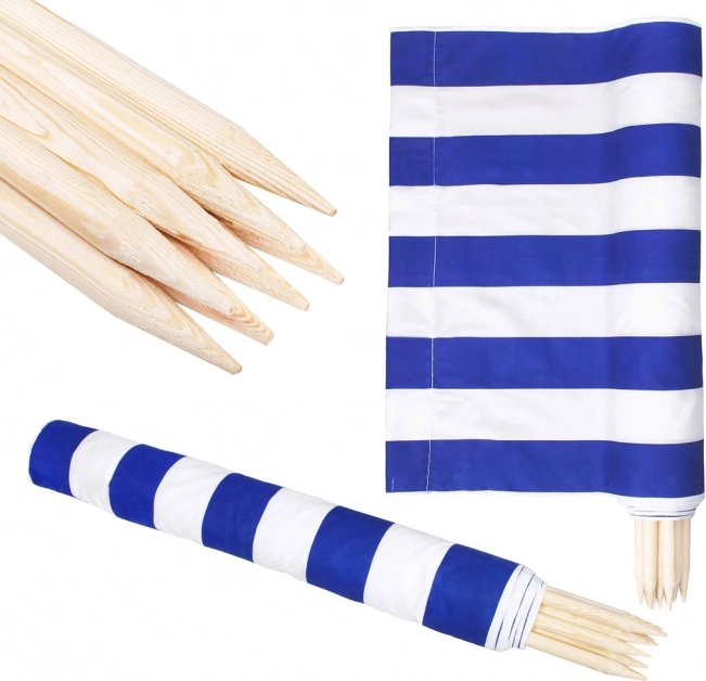 Plážová zástena 8m modro-biela je perfektným riešením pre ochranu pred vetrom a zaistenie súkromia na pláži. Je vybavená praktickým závesom, ktorý umožňuje ľahké skladovanie a prenášanie.