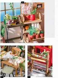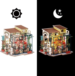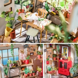 Vytvorte si vlastné malebné kvetinárstvo s pripojeným skleníkom a množstvom rastlín, políc a vyrezávaných doplnkov. Stavebnica obsahuje predrezané diely z preglejky, papierové a textilné prvky a sadu nástrojov, vďaka ktorým vznikne realistický model s nápisom „Flower Shop“ a priehľadnou sklenenou časťou. Po zostavení poslúži ako štýlová dekorácia vášho interiéru.