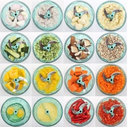 Zariadenie je vybavené štvornásobným nerezovým nožom, ktorý ľahko naseká akékoľvek produkty. Protišmykové nožičky vám umožnia používať sekáčik bezpečne a stabilne.