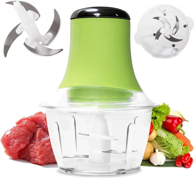 Elektrický krájač ovocia a zeleniny sa veľmi jednoducho používa. Jednoducho vložte potrebné ingrediencie do nádoby, zapojte ho do siete a stlačte tlačidlo na hornej strane zariadenia pre spustenie drviča.