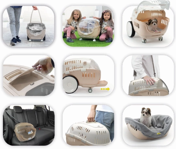 Elegantná, funkčná a praktická prepravka s madlom na kolieskach a ergonomickou rukoväťou pre jednoduchú prepravu našich miláčikov. Prepravku možno ľahko a rýchlo prestavať na domácu búdu alebo pelech vďaka príslušenstvu ako matrac alebo polstrovaný potah základne. To je obzvlášť dôležité pri preprave chorých zvierat.