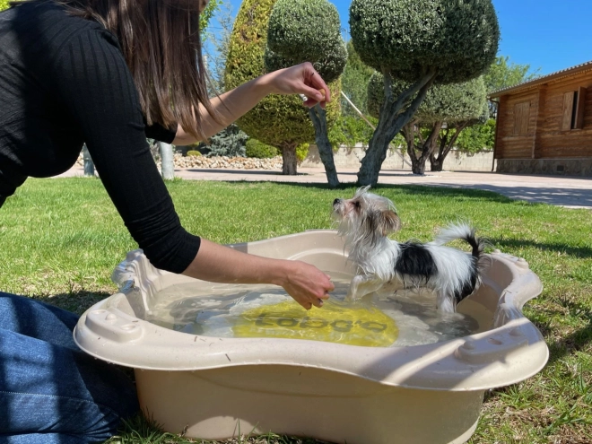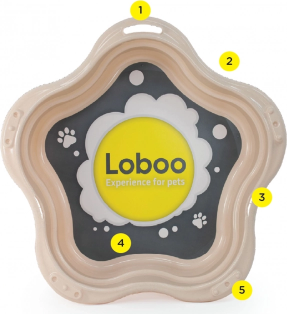 Tento priestranný bazén pre domáce zvieratá je ideálny na hygienické kúpanie aj letné ochladenie na záhrade. Ľahká a zároveň pevná konštrukcia z materiálu obohateného o mandľové škrupiny zaisťuje dlhšiu životnosť a menšiu ekologickú stopu. Dekor odolný voči vode a UV žiareniu je aplikovaný technológiou IML, takže sa nelúpe ani nevybledne.