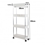 Skrinka je navrhnutá pre efektívne využitie priestoru vo vašej domácnosti. Štyri police ponúkajú dostatok úložného priestoru pre toaletné potreby v kúpeľni alebo potraviny v kuchyni. Vďaka kolieskam je jednoducho premiestniteľná a multifunkčná, takže si môžete prispôsobiť jej použitie podľa vlastných potrieb.
