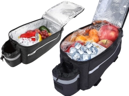 Univerzálna termo brašna na bicykel na montáž na zadný nosič je ideálna na každodenné dochádzanie aj dlhšie výlety. Tepelne izolovaná hlavná komora bezpečne uschová potraviny, nápoje alebo oblečenie, zatiaľ čo menšie vrecká pojmú drobnosti, ako sú kľúče, peňaženka či fľaša s vodou. Reflexný prvok po obvode zvyšuje viditeľnosť za šera a v tme.