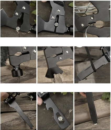 Nástroj obsahuje 17 integrovaných funkcií, vrátane sekery, píly, klieští a ďalších, čo z neho robí ideálnu pomôcku pre každý outdoorový výlet.