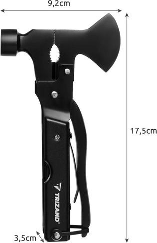 Multifunkčný nástroj Trizand 17v1 kombinuje všestrannosť a kompaktnosť pre vaše vonkajšie dobrodružstvá. S rozmermi iba 17,5 cm a hmotnosťou 376 g ho ľahko pripevníte k opasku alebo uložíte do batohu. Užívajte si pohodlie pri kempovaní, turistike či rybolove, kde budete mať potrebné nástroje vždy poruke.