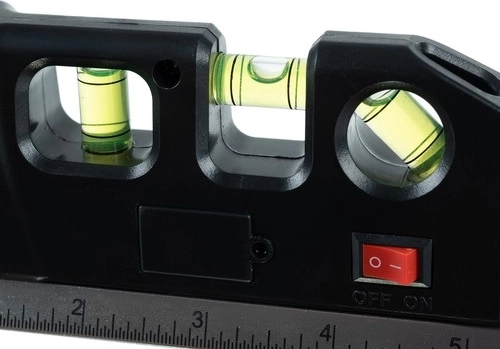 - Laserový ukazovateľ umožňuje určovať horizontálne a vertikálne roviny.