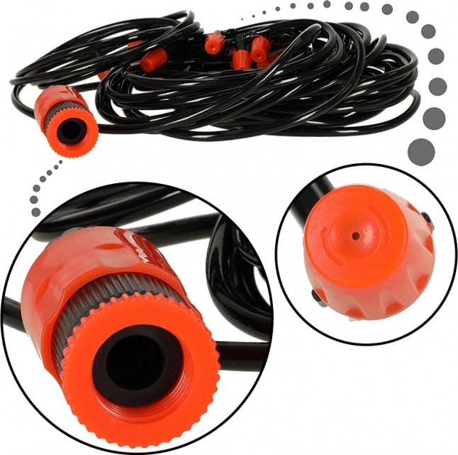 Jednoduché použitie: Stačí pripojiť hadicu na záhradný kohútik a vychutnať si osviežujúci účinok jemnej hmly.