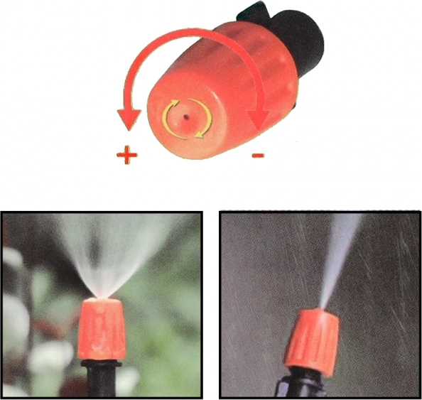 Vďaka plastovému systému trysiek môžete ľahko kontrolovať intenzitu hmly a priemer hmly, čo umožňuje mať plnú kontrolu nad mikroklímou vašej záhrady.