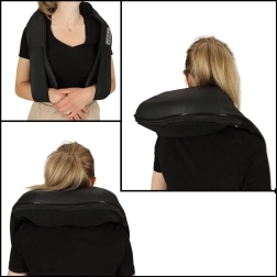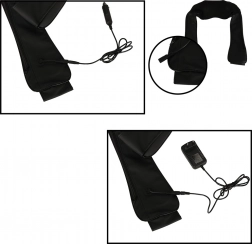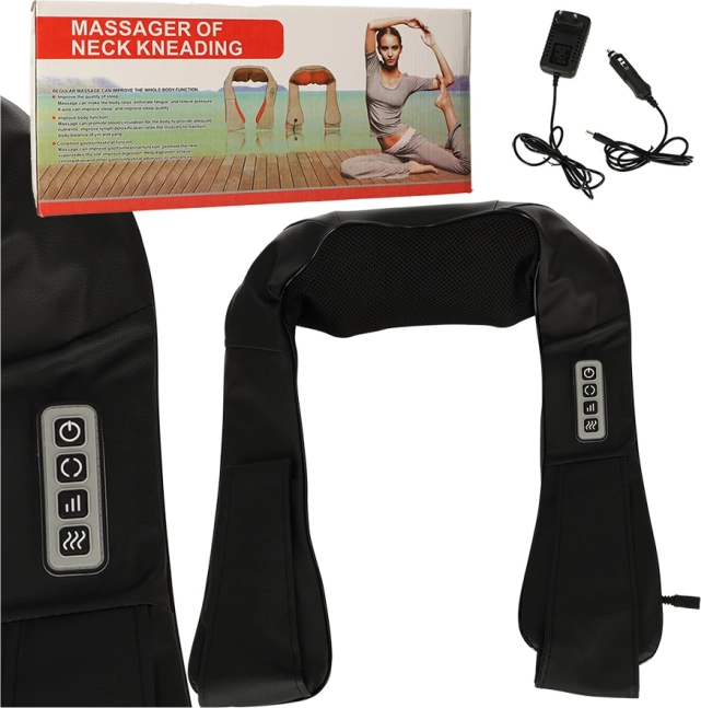 Ovládací panel priamo na golieri umožňuje prepínať smer rotácie, regulovať intenzitu a samostatne zapínať/vypínať teplo. Odolné prevedenie z eko kože a priedušná kontaktná zóna sa ľahko čistia a príjemne nosia. V balení nájdete aj sieťový adaptér, aj autoadaptér pre pohodlné použitie na cestách.