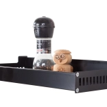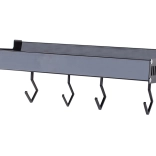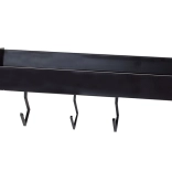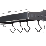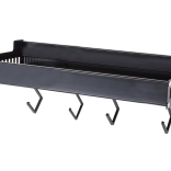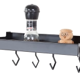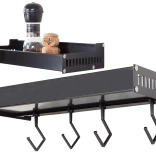 Táto nástenná polica kombinuje minimalistický vzhľad s maximálnou funkčnosťou. Práškovo lakovaný hliník je odolný voči vlhkosti aj korózii, takže je ideálny do kuchyne aj kúpeľne. Odnímateľné háčiky umožnia zavesiť utierky, naberačky alebo kľúče, zatiaľ čo horná odkladacia časť bezpečne udrží koreničky, dózy alebo kozmetiku.