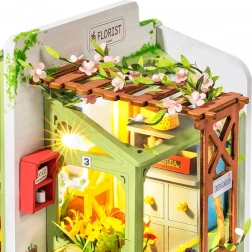 Vstúpte do poetického sveta miniatúr a vytvorte si vlastné kvetinárstvo s lavičkou, poštovou schránkou a pestrofarebnými kvetmi. Model vyniká realistickými doplnkami, drevenou konštrukciou a príjemným LED nasvietením, ktoré po dokončení premení každý kút domova na očarujúcu dekoráciu.
