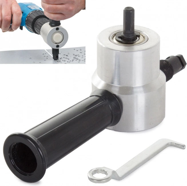 Využite naplno svoj čas vďaka tomuto inovatívnemu nástavcu na strihanie plechu. Ľahko ho pripevníte na všetky typy vŕtačiek a získate tak nástroj, ktorý vie rezať pod uhlom 360 stupňov, bez poškodenia materiálu.