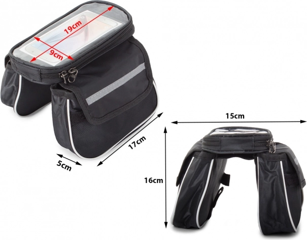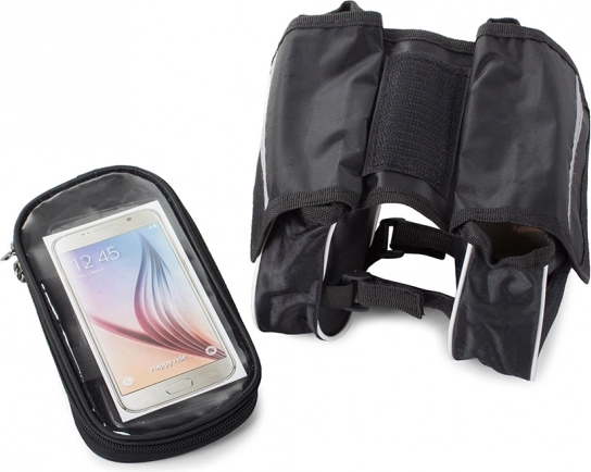 Táto taška na rám bicykla je vyrobená z odolného materiálu, čo zaručuje jej dlhú životnosť aj pri náročnom používaní. Bezproblémové použitie mobilného telefónu počas jazdy je zabezpečené vďaka transparentnej prednej časti.