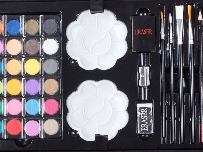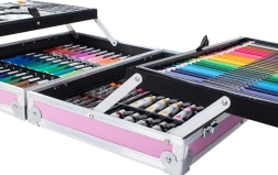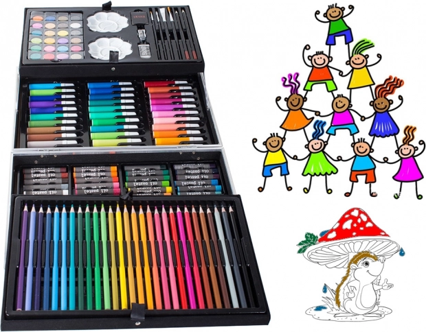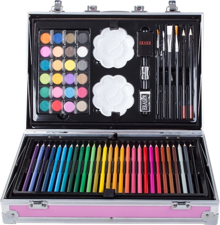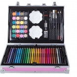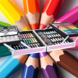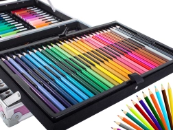 Všetky potrebné pomôcky pohromade pre maľovanie a kreslenie. Od pasteliek po vodové farby, sada obsahuje všetko potrebné.