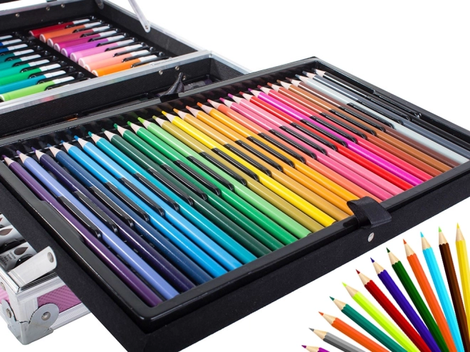 Objavte svet farieb a kreativity s našou výtvarnou sadou uloženou v praktickom kufríku. Táto sada je vybavená všetkým potrebným pre maľovanie a kreslenie: