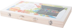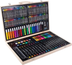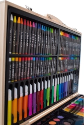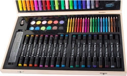 Súprava je starostlivo usporiadaná v odolnom drevenom púzdre, čo zabezpečuje jednoduchú prenositeľnosť a organizáciu. Každý nástroj má v súprave svoje miesto, čo znamená, že už nikdy nestratíte obľúbenú pastelku. Po dokončení umeleckých diel jednoducho všetko uložíte a uschováte v púzdre.