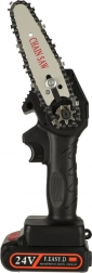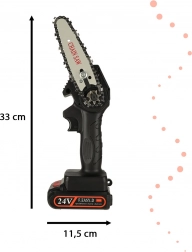 Prenosná akumulátorová mini reťazová píla, ktorá je skvelým pomocníkom pre každého záhradkára alebo kutila. Vďaka svojej nízkej váhe a kompaktným rozmerom sa ľahko používa a umožňuje efektívnu prácu aj na ťažko dostupných miestach.