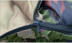 Zips sa rozopína až k spodnej časti pre ľahké vetranie aj rozloženie na prikrývku. Suchý zips bráni samovoľnému rozopnutiu.