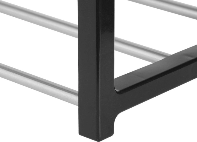 Moderný dizajn s čiernymi plastovými stĺpikmi a chrómovými hliníkovými priečkami.
