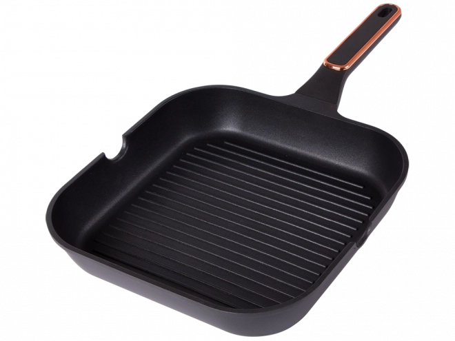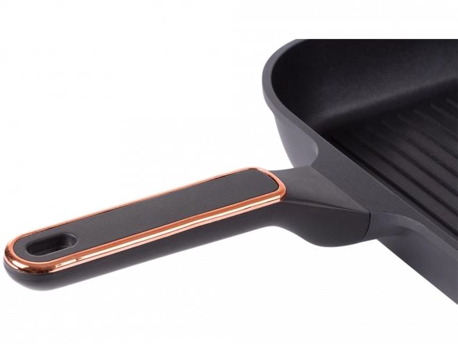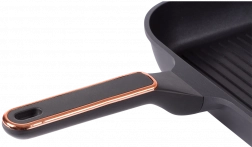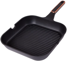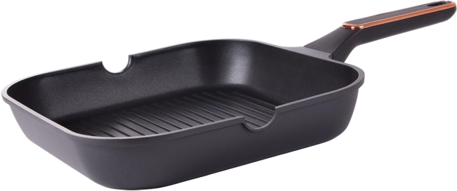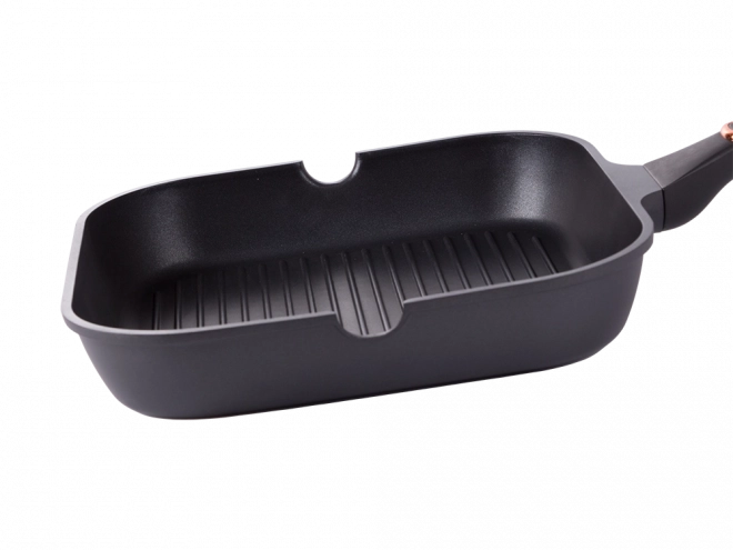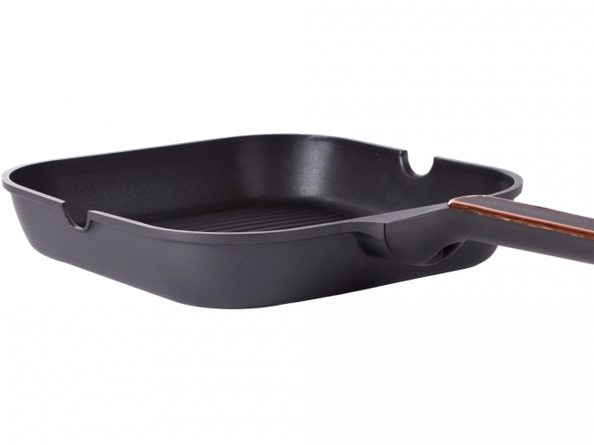 Odolná grilovacia panvica 28 cm z tlakovo liateho hliníka s nepriľnavým povrchom pre jednoduché varenie aj čistenie. Vhodná na indukciu, plyn, sklokeramiku aj elektrinu. Rebrovaný povrch vytvorí efekt grilu, obojstranné výlevky uľahčia zlievanie a ergonomická rukoväť zaistí bezpečný úchop.